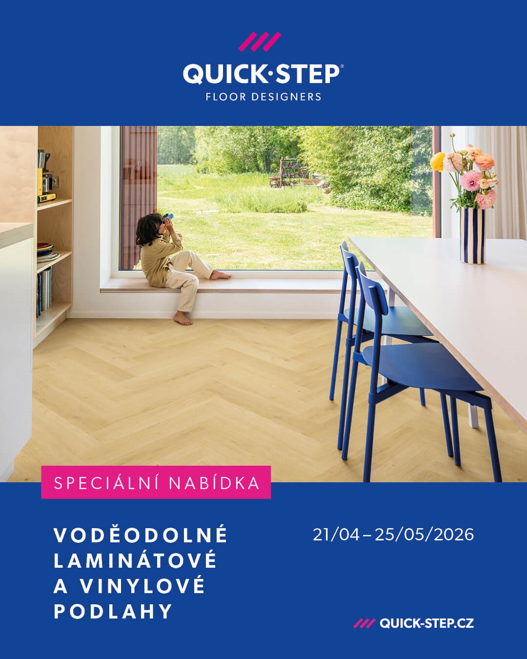 V průběhu této akce můžete využít slevu na vybrané laminátové a rigidní vinylové podlahy Quick-Step ve výši 25 % z nákupní ceny.